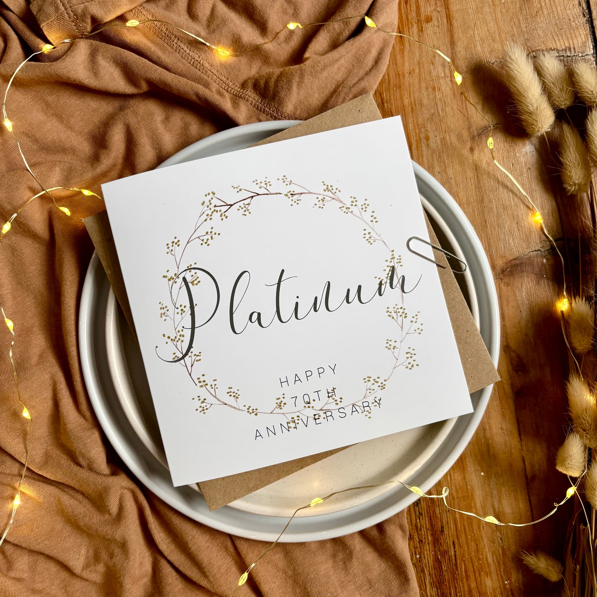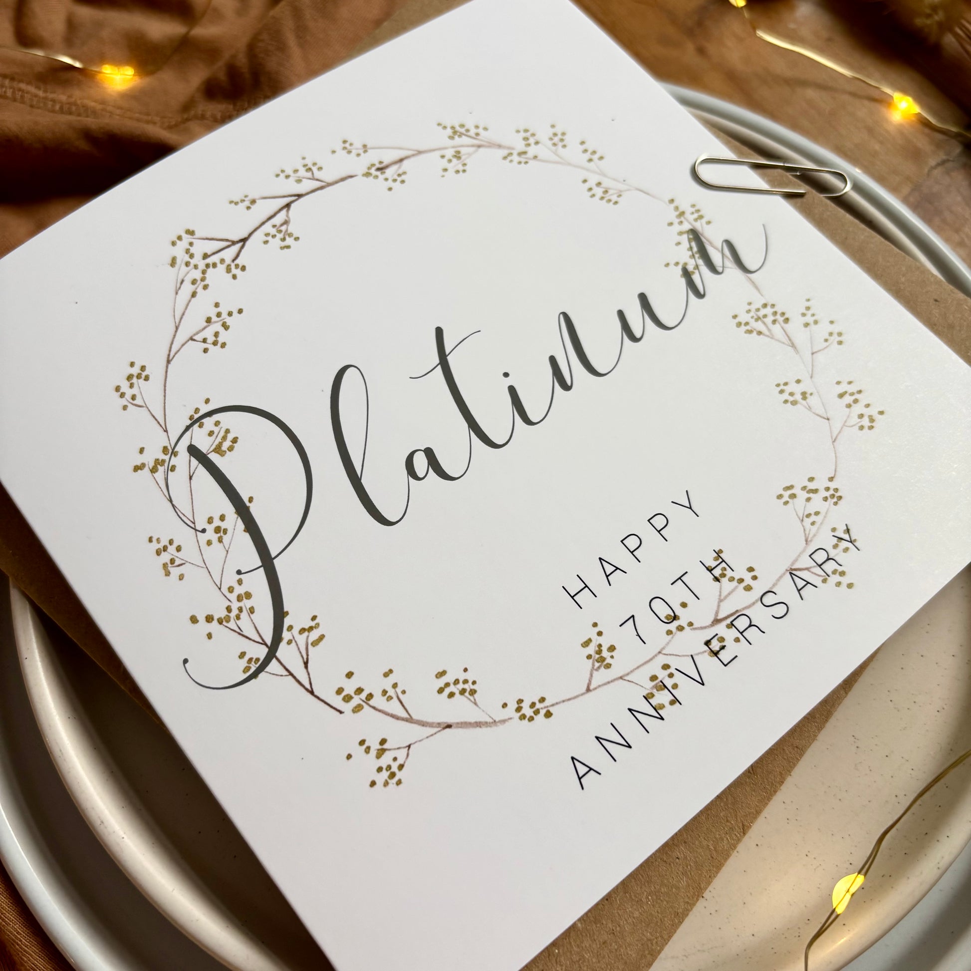 Wreath 70th 'Platinum' Anniversary Card